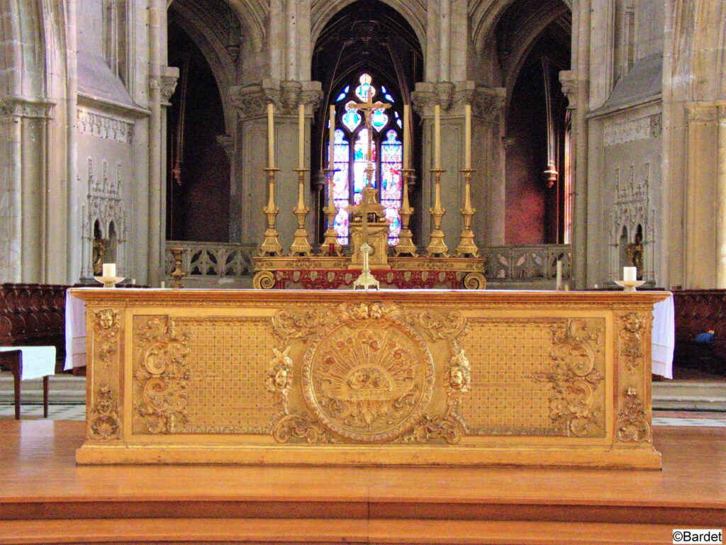 Pendant la reconstruction, elle devient cathédrale sous le patronage de saint Louis, en 1697, à la suite de l’érection du diocèse de Blois. Bel autel en bois doré installé par le premier évêque de Blois.