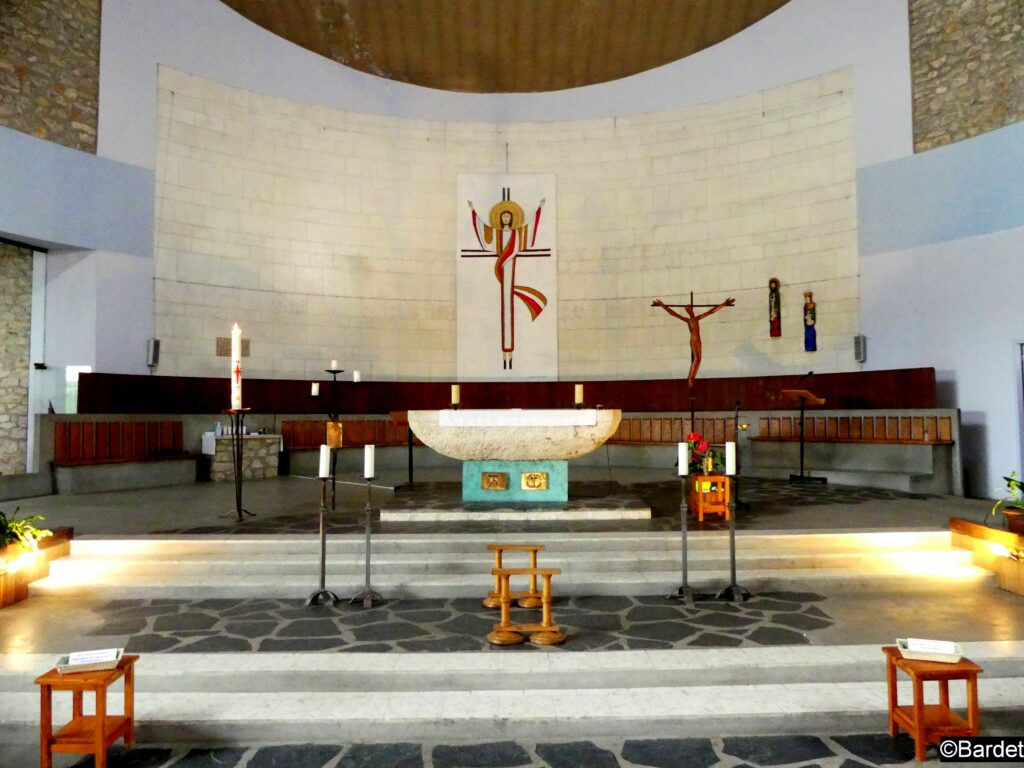 Église diocésaine, 1964-65, par M. Paget, architecte blésois. Le vaste espace convergeant vers l’autel évoque le rassemblement de la communauté chrétienne comme une grande famille. Au mur extérieur nord, grand vitrail évoquant le récit de la Création. Le baptistère est un bassin rempli d’eau éclairé par une lanterne : “Vous qui avez été baptisés, c’est dans la mort de Jésus que vous avez été plongés, pour vivre avec lui, d’une nouvelle de vie” Rm 6,4. Pour les 50 ans de la dédicace (8 novembre 2015), une nouvelle œuvre murale est réalisée par le père Nicolas Pelat.