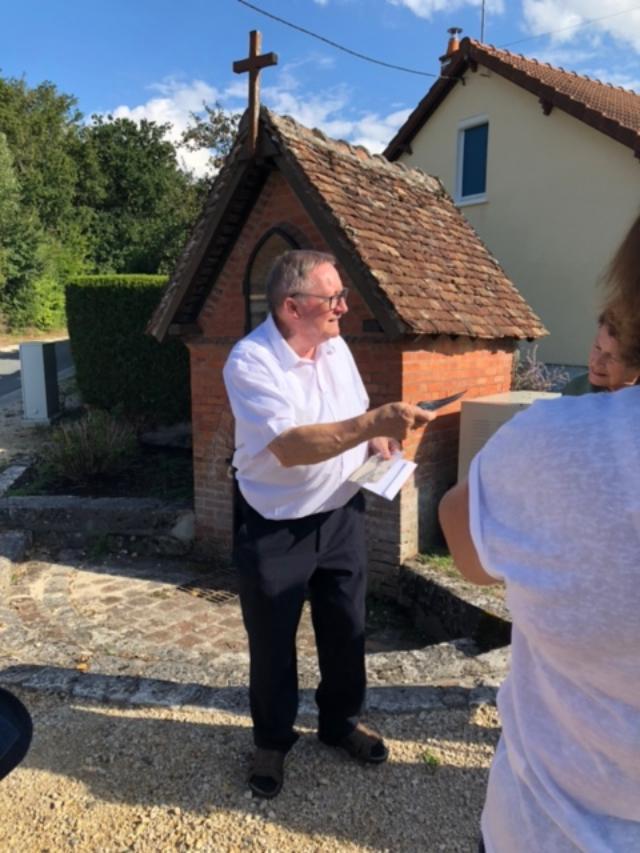 Jean-Pierre Legrand, diacre et guide de la pastorale du tourisme nous a fait visiter cette église, en faisant la rétrospective de son histoire, en lui donnant son sens religieux. Puis il a relaté les apports de chaque prêtre au cours de ces dernières siècles, notamment le chanoine Augustin Petit qui profita de ses 56 ans comme curé de Souesmes de 1892 à 1948 pour embellir l’église (construction de deux chapelles, pose de vitraux sur l’ensemble des ouvertures-fenêtres et grâce à ses recherches archéologiques, établissement de panneaux explicatifs sur l’histoire de la paroisse, sans oublier l’achat de deux cloches formant carillon avec l’ancienne.)